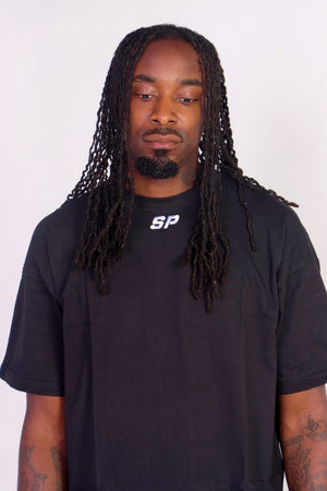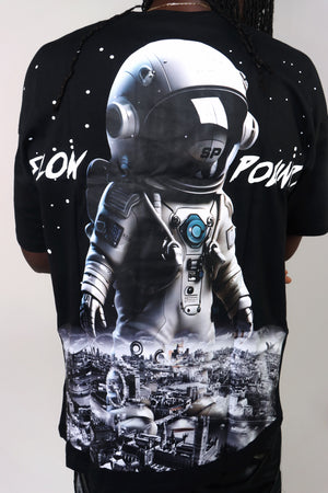 Level up your street style with this Space JAMM Oversized T-Shirt from Slowpounds. In a Black colourway, this loose-fitting tee is cut from soft cotton fabric for everyday comfort. It features short sleeves with a ribbed crew neckline and is finished up with graphic branding at the back with our Sp embroidered on the neckline.