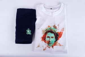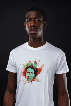 Our Unisex round-neck T-shirts come in white with a clean print of the late Queen Elizabeth II surrounded by some of the beautiful scenery of Great Britain, giving you a real British royal vibe and style.